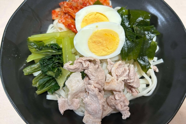 調味料として、すりごま、黒酢などを混ぜてごまだれを完成させます。お米が高騰している今、麺類が活躍する場面も増えており、残り物感もゼロ。災害時に残り物を使いこなすことも「備えのひとつ」になりそうです。