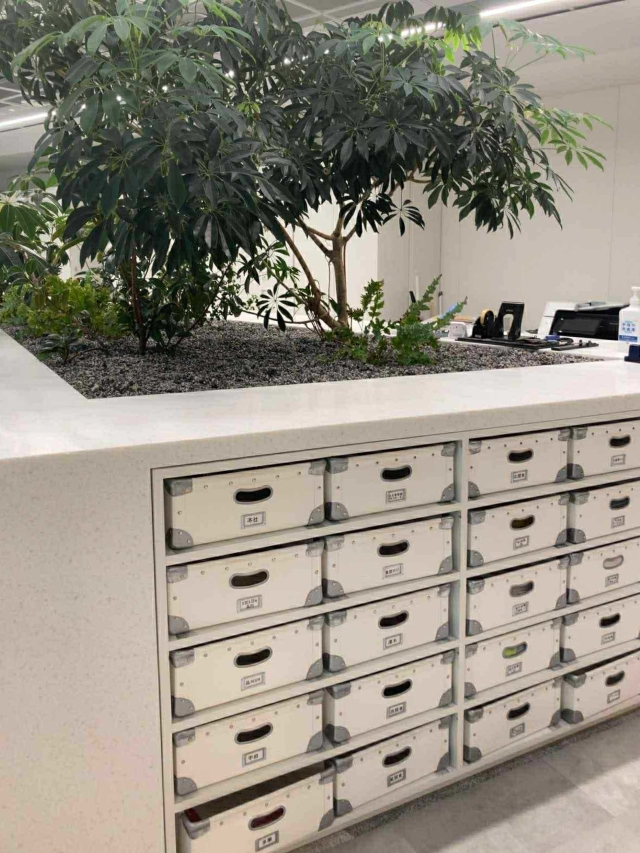 文房具や書類などの定位置が決まっており、余裕をもって収納されています。指定席がないオフィスだからこそ、物の管理ルールを徹底することが重要であり、誰もが必要なものを迷わず取り出せる仕組みが整っている点に感心しました。
