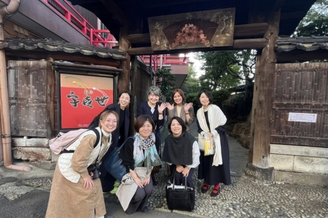 次に、多賀茶焙煎所から道を挟んだ向かい側の「百年料亭 宇喜世」にて、ランチをいただきながらミーティング。