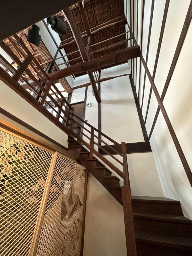 木造3階建ての館内は、なんとも面白い造りをしています。階段があちらこちらに点在していて、上がった先に客間とお手洗いが並んで配置されています。何個も階段を上がったり下りたり、どの階段を上がったのかわからなくなるくらいです。