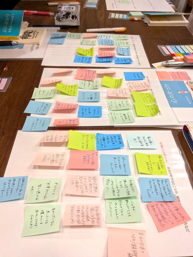 こちらも付箋とワークシートを使いながら一つずつ整理して、自分オリジナルの、たとえ乱れても普段の自分に戻りやすくなるような、心の仕組みを作っていきます。