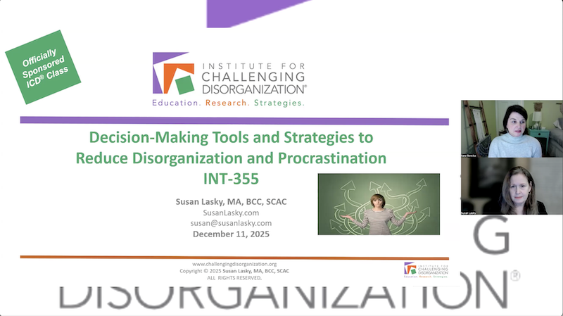 12月は「意思決定ツールと戦略:オーガナイズできない状態と先延ばしを減らす(Decision-Making Tools and Strategies to Reduce Disorganization and Procrastination)」をICDウェビナー受講しました。