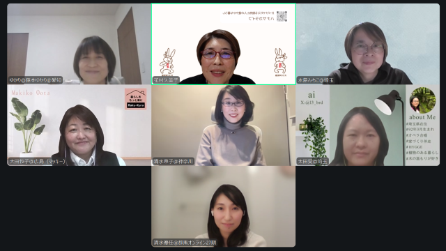 ヒアリングは、クライアントの価値観や思考のクセを探る、ライフオーガナイズの要です。花村久美子さん(愛知県)の声掛けで今年11月から始まり、今回は3回目。参加メンバーも増え、今回は7名が参加しました。