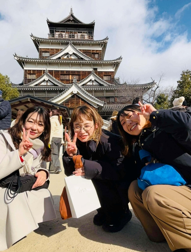 ランチ会の前には、予定の合った3人で“大人の遠足”と称して広島城観光へ。寒波の襲来が心配な日だったのですが、天気も良く、気持ちよく散策できたようです。実は今年の3月22日で閉城してしまう広島城。天守閣へ登ることができる残り少ない期間でした。